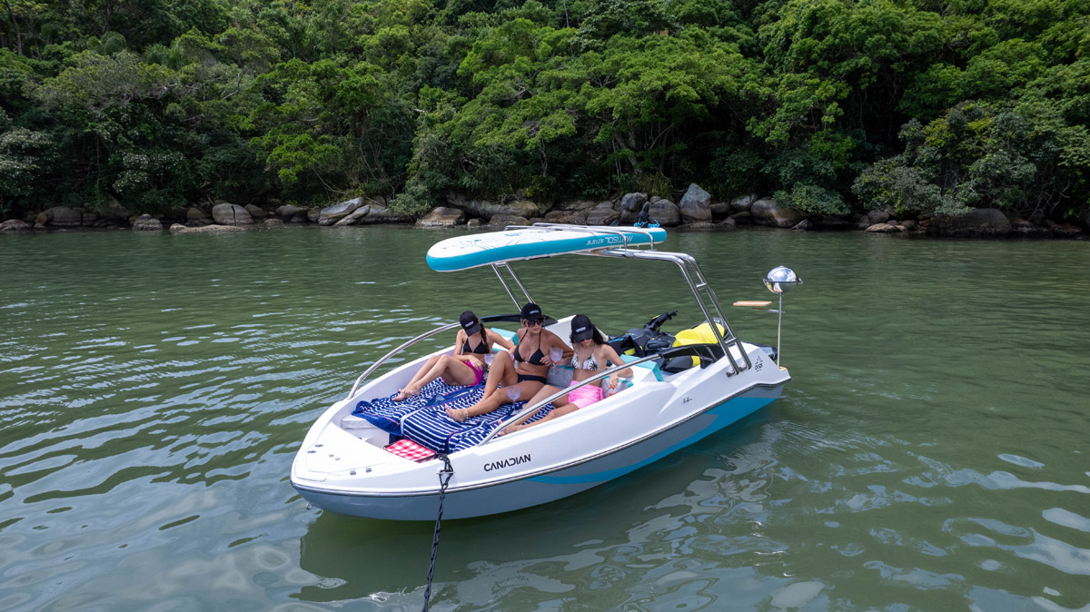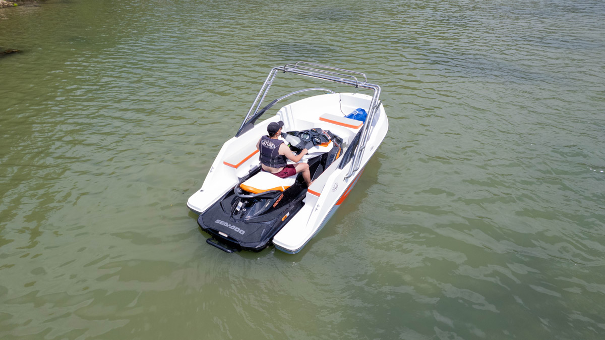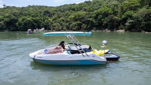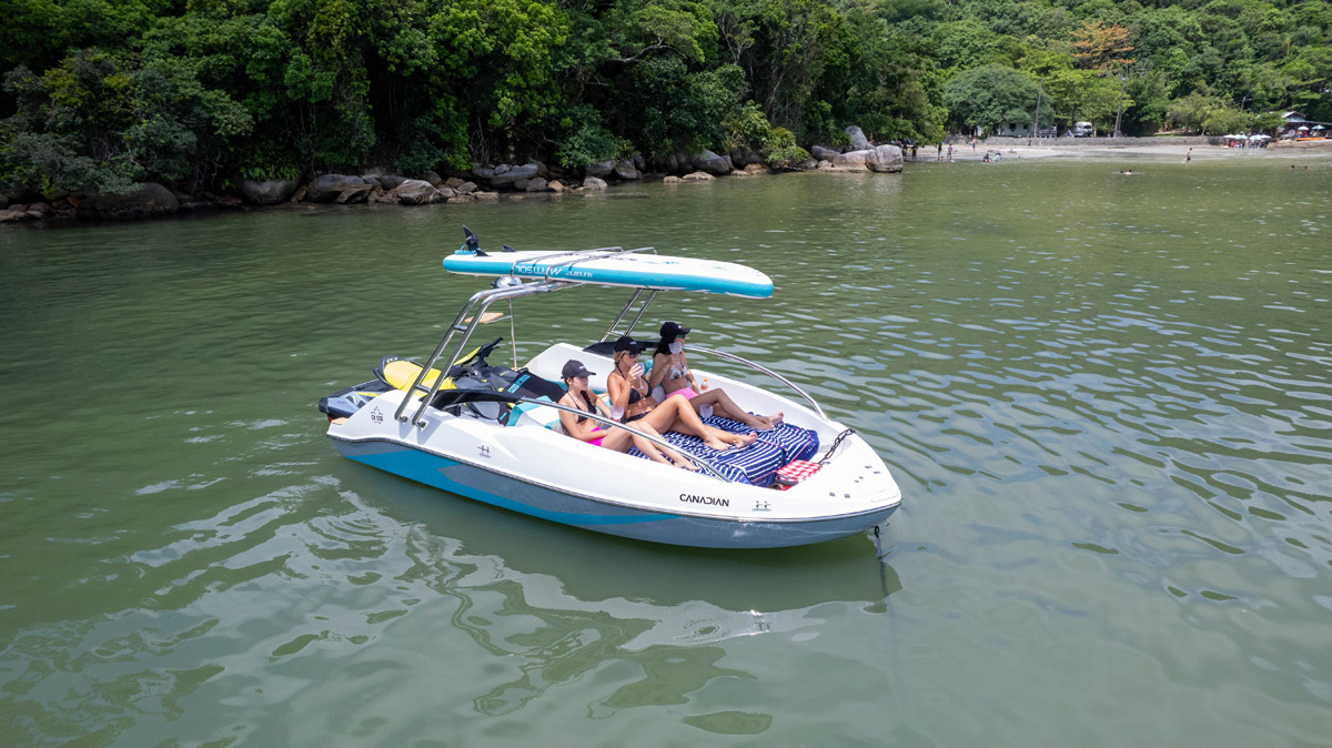 Pessoas que procuram mais espaço para acompartilhar momentos com a família e amigos encontram aqui a solução perfeita de combinação de jet com lancha