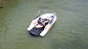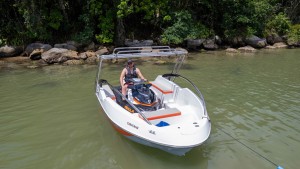 Embarcação de 15 pés, para acoplamento em motos aquáticas, para as mais variadas marcas.
